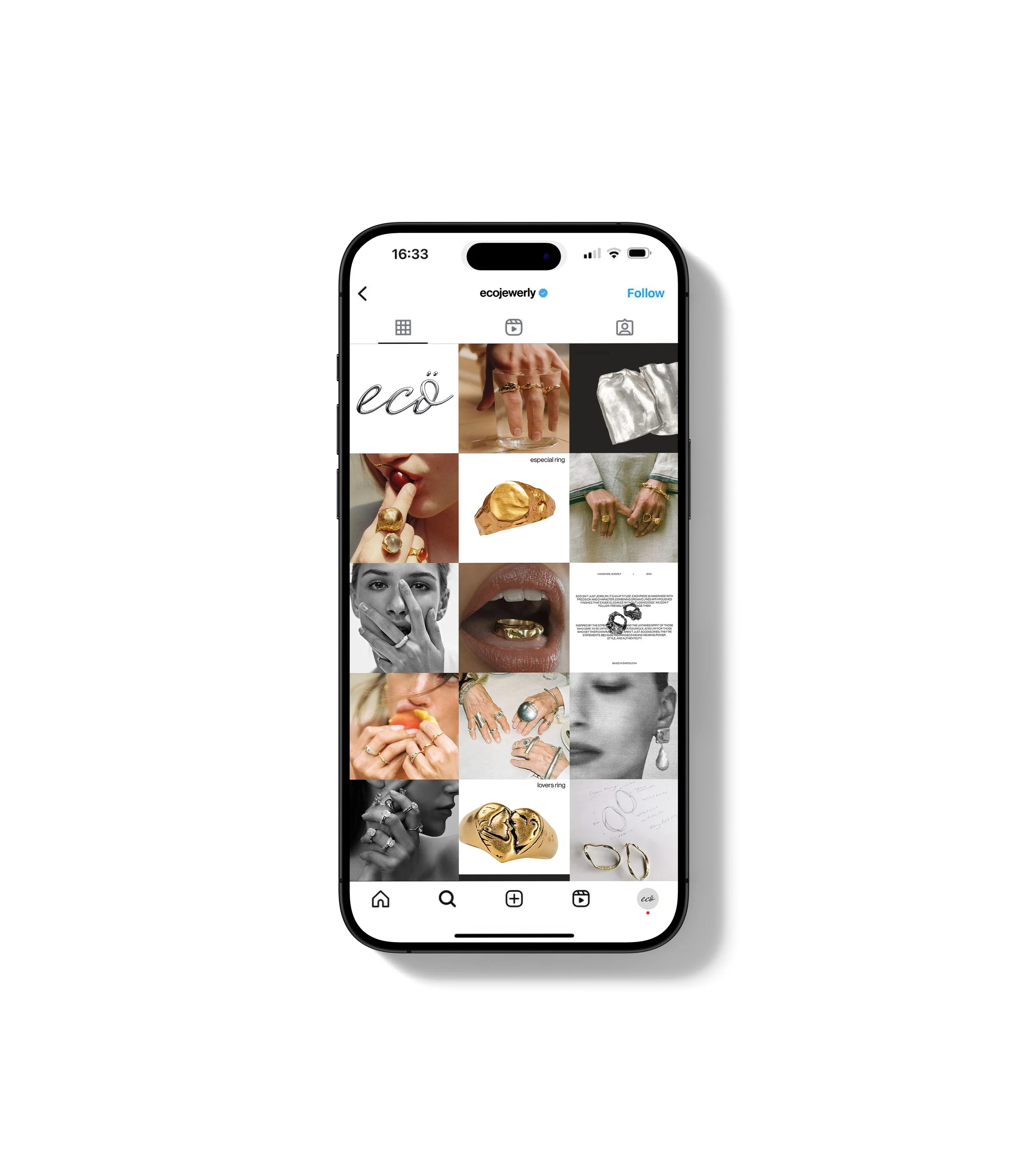 Eco es una identidad visual desarrollada para una marca de joyería que combina elegancia atemporal con una estética moderna y vanguardista.