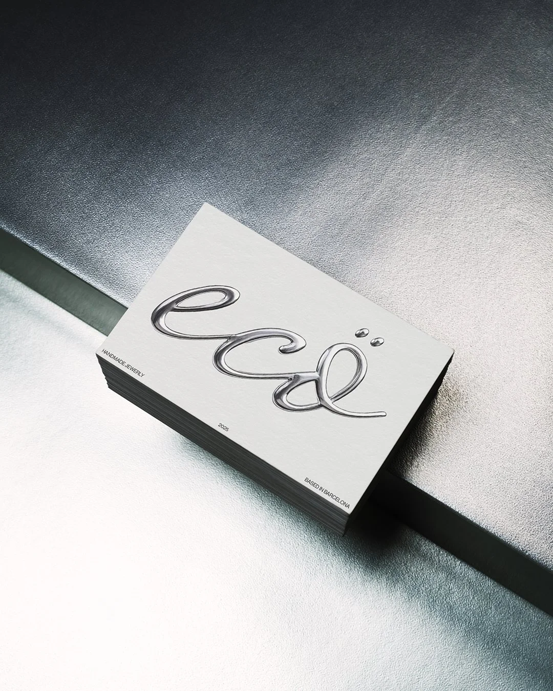El objetivo era crear una marca con presencia y carácter, capaz de transmitir sofisticación sin renunciar a la autenticidad. Para ello, el logotipo toma formas caligráficas fluidas con un acabado metálico 3D, evocando directamente la materia prima: el metal pulido y trabajado a mano. El nombre “Eco” también hace referencia a la resonancia emocional de cada pieza, diseñada para perdurar en el tiempo.