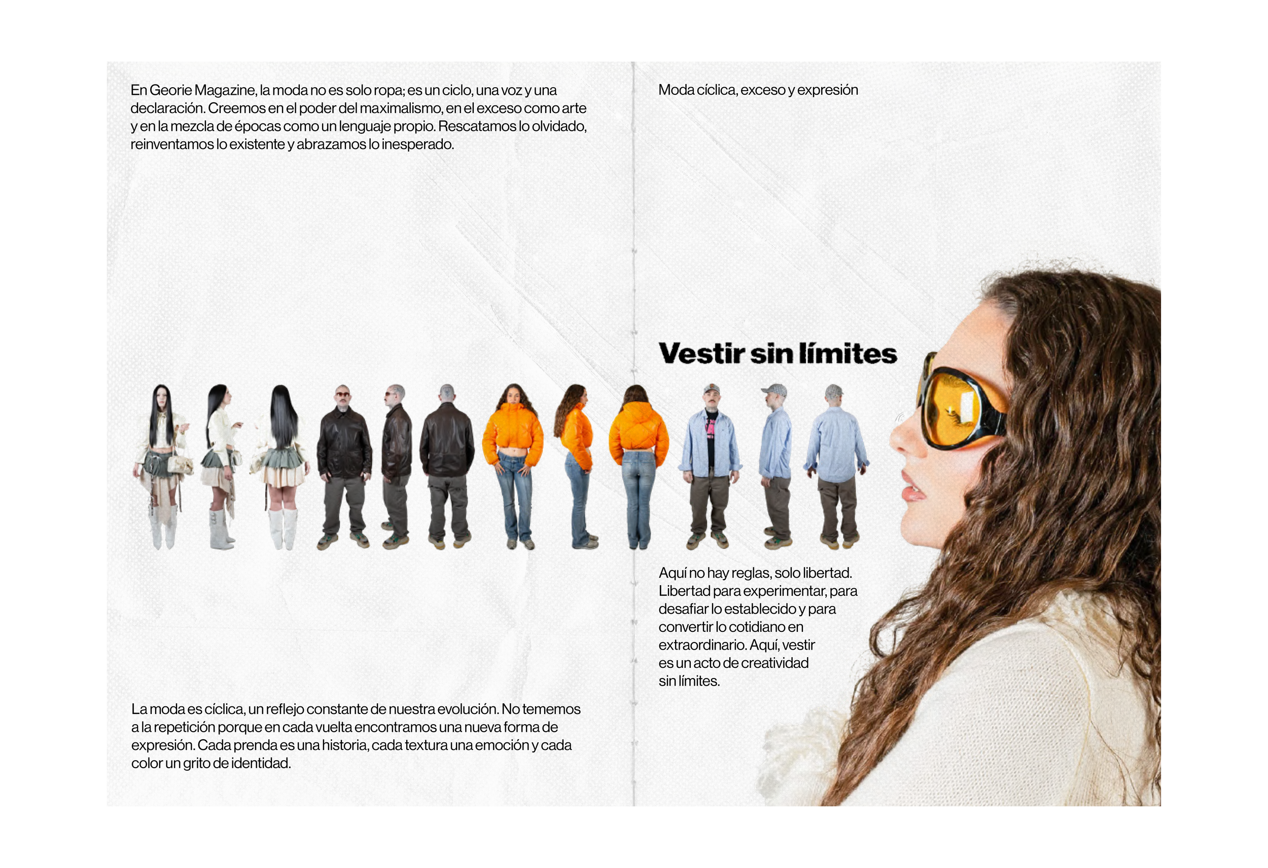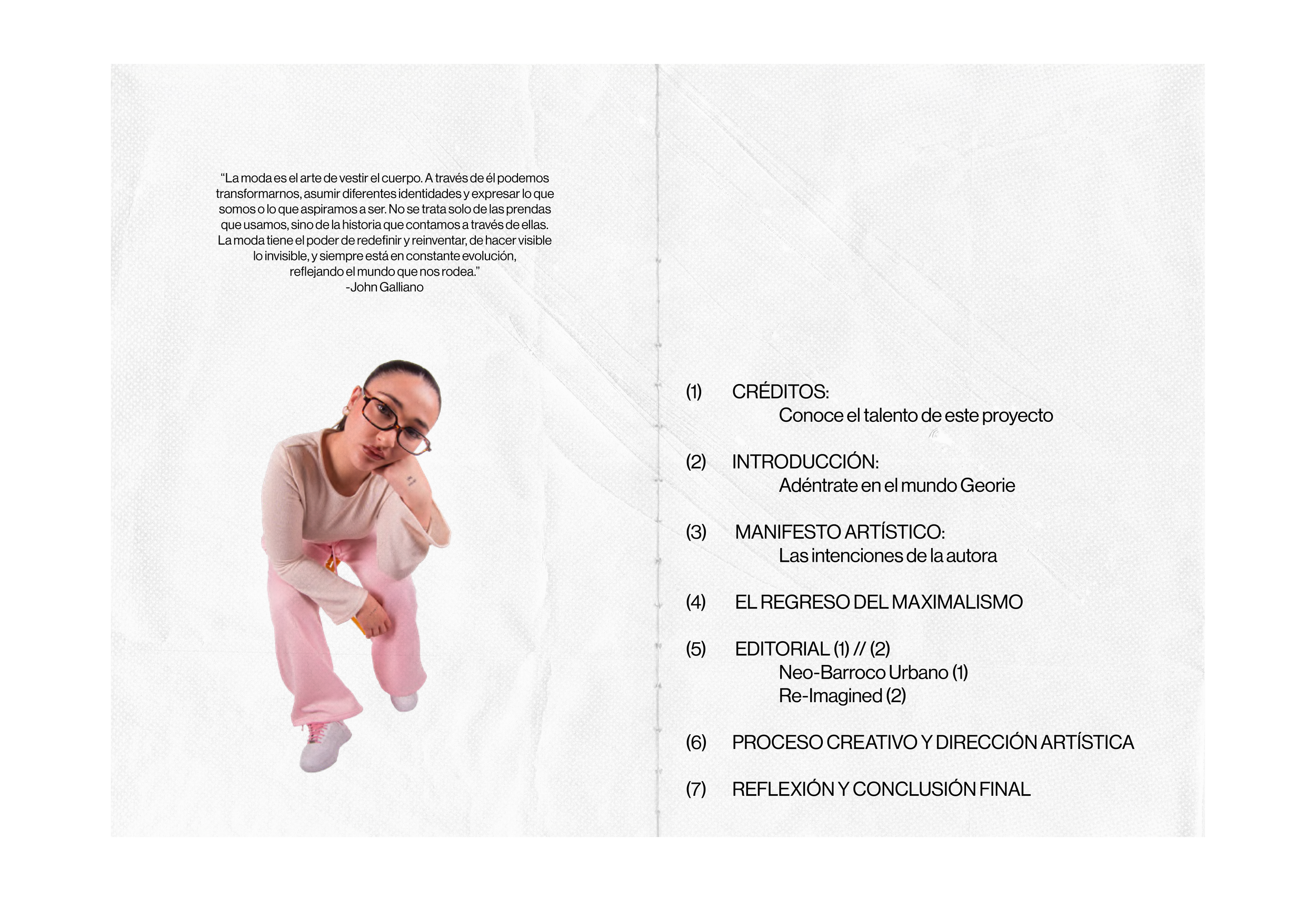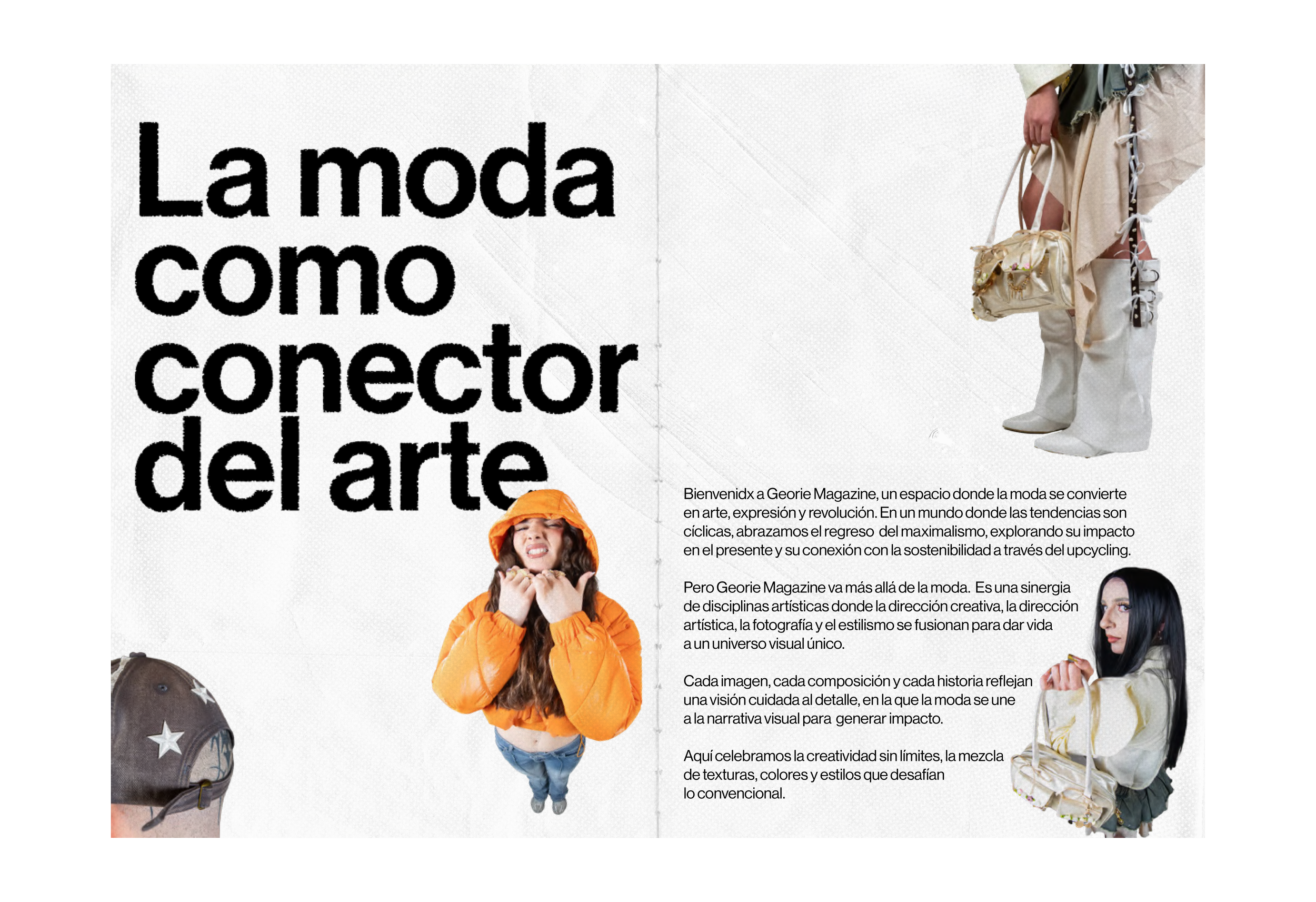 Georie Magazine es una propuesta editorial que convierte la moda en un manifiesto visual. A través de una dirección de arte cuidada y una estética potente, esta revista explora conceptos como el maximalismo, el upcycling y la experimentación visual.