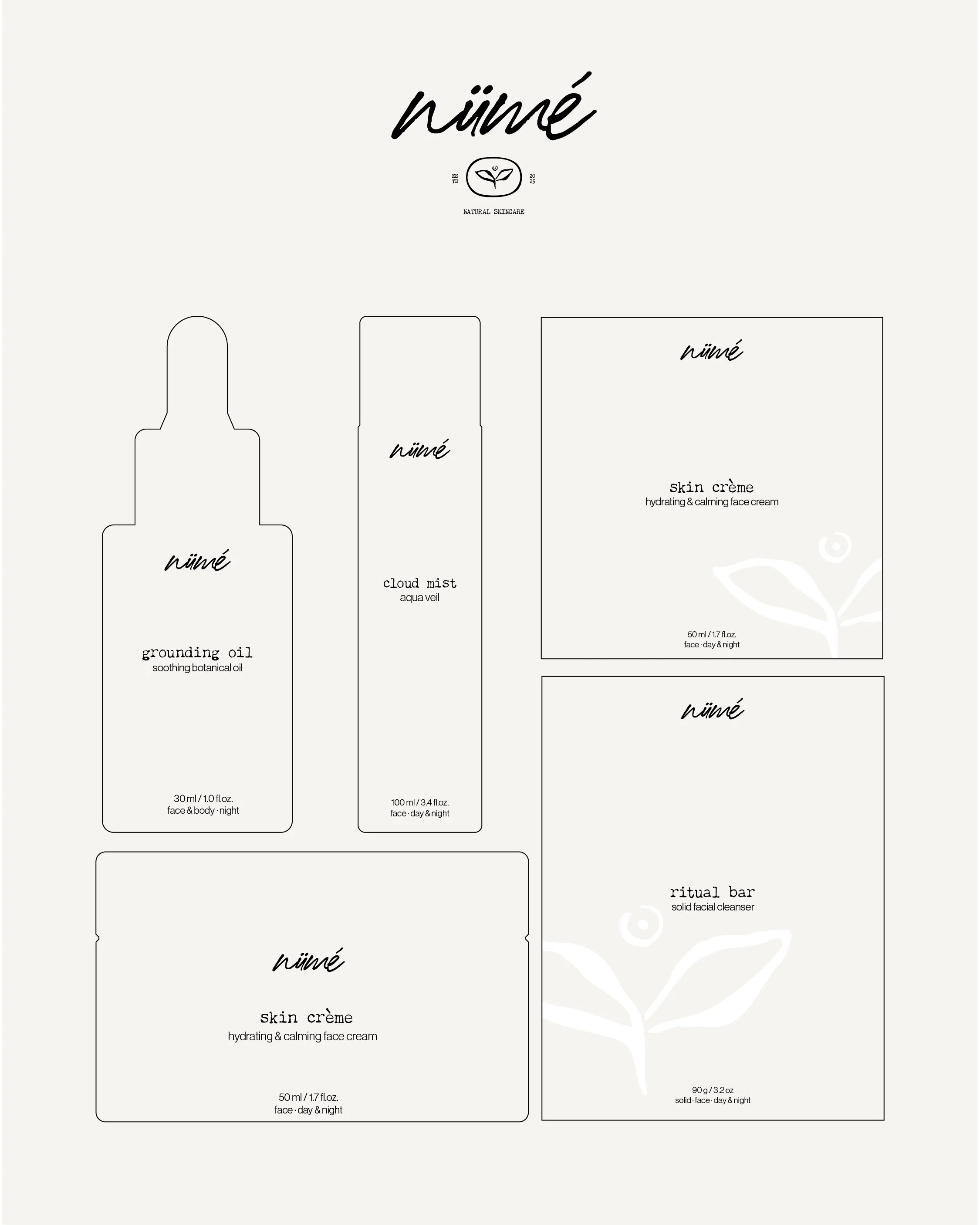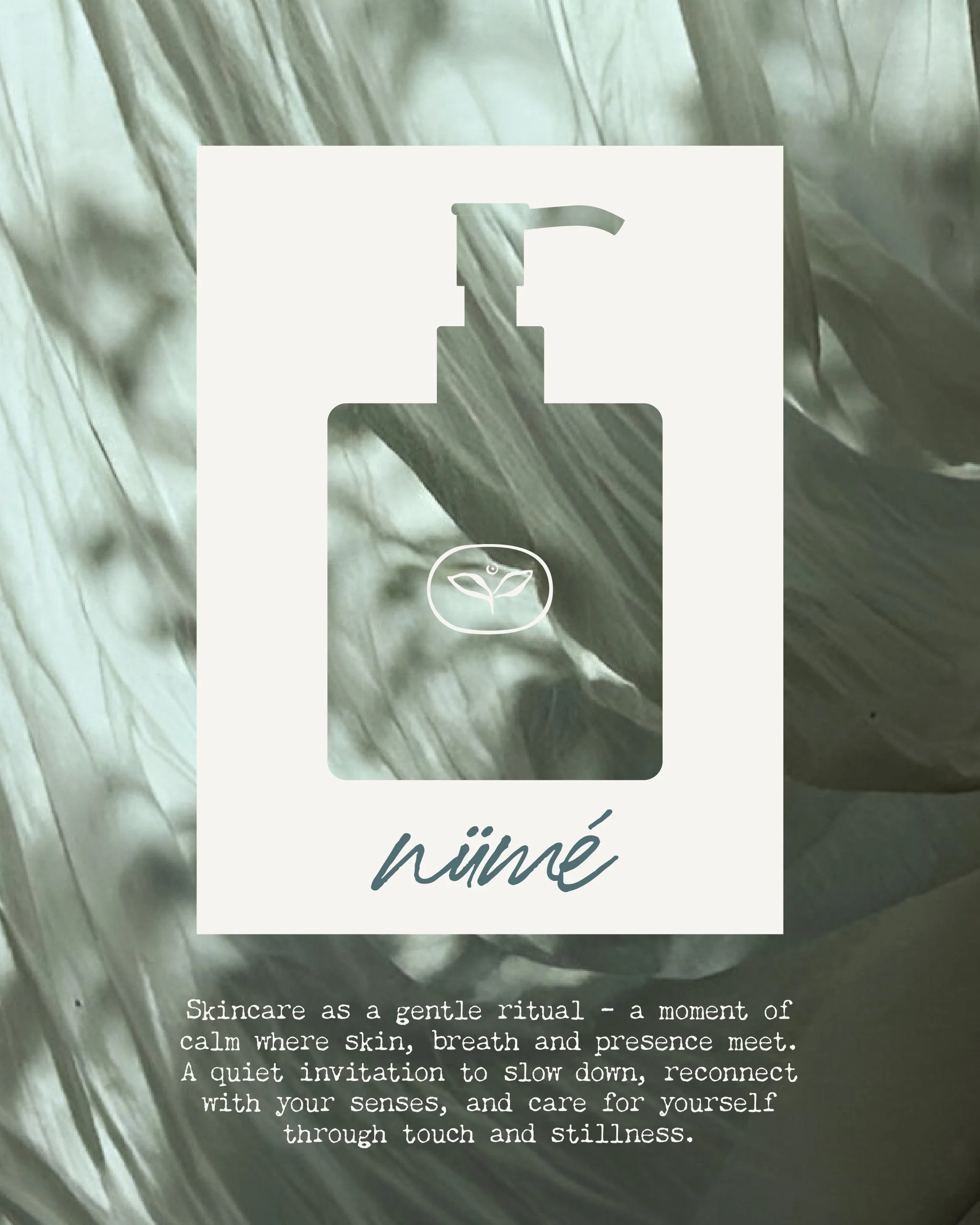 nümé se presenta como una marca minimalista, elegante y silenciosa: un diseño que no busca imponerse, sino acompañar. Una identidad que convierte el cuidado de la piel en un lenguaje visual de autocuidado.